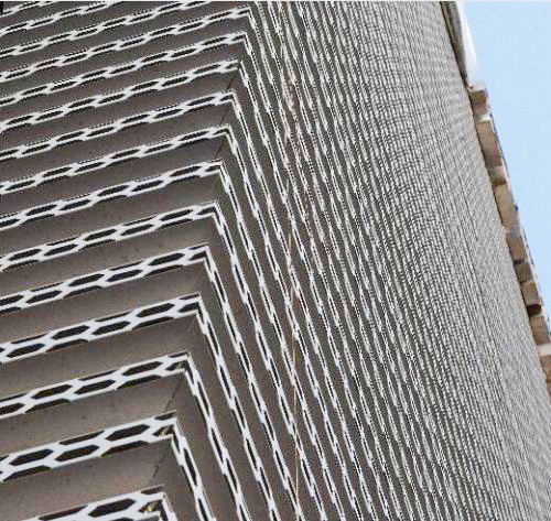 板面是規(guī)律排列的菱形孔,形狀如同長城。這種沖孔長城鋁單板是汽車4S店外墻裝飾指定使用的材料,因裝飾視覺效果好、防火、耐用性強(qiáng)及安裝方便等特點(diǎn)而被越來越多的建筑廣泛使用。