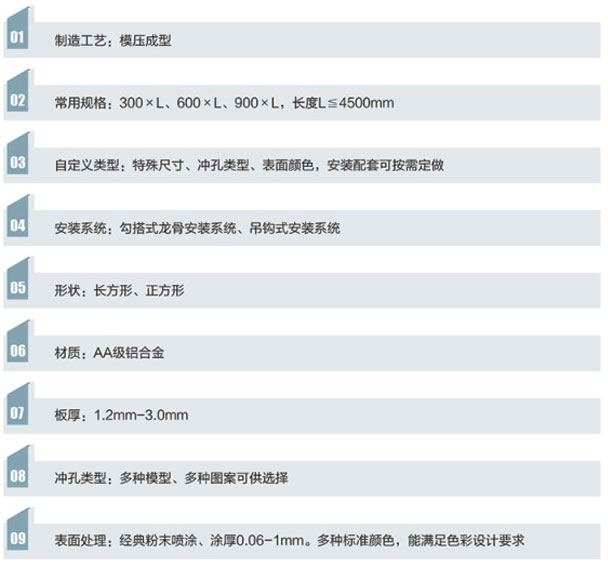 搭鋁單板天花板面平整,一般為單向平行龍骨勾搭式結(jié)構(gòu),板與板之間的拼接時通過龍骨有次序搭折在一起的,板邊獨特的勾搭設(shè)計,能很好的控制板與板之間的活動性,從而確保了板與板之間的縫隙風(fēng)嚴(yán)密平整拼縫細(xì)密,棱線分明,不同寬度可實現(xiàn)多種組合。